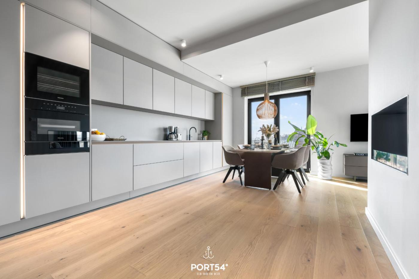 Apartment mit Meerblick. This apartment features a fireplace. This spacious apartment comprises a kitchen, a seating area, 2 separate bedrooms and 1 bathroom with a shower and a hairdryer. Guests can make meals in the kitchen that comes with a stovetop, a refrigerator, a dishwasher and kitchenware. Featuring a balcony with sea views, this apartment also provides a washing machine and a flat-screen TV. The unit offers 2 beds.