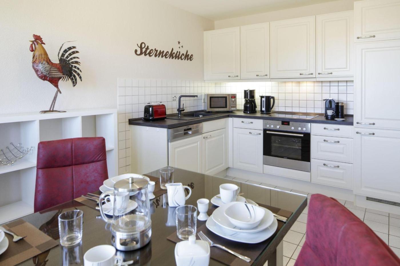 Apartment mit Meerblick. Boasting 2 bedrooms, this spacious apartment has 1 bathroom with a bath, a seating area and terraceyou can relax. The fully equipped kitchen has a stovetop, a refrigerator, a dishwasher and kitchenware. The apartment features a washing machine, a coffee machine, a wardrobe, a flat-screen TV with cable channels, as well as sea views. The unit offers 2 beds.