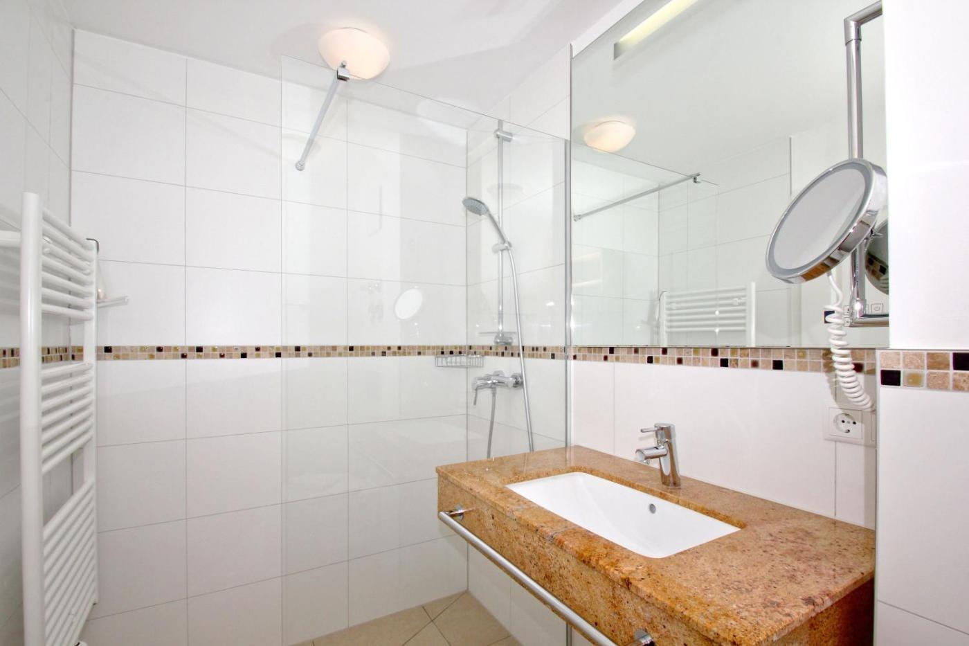 Apartment mit Balkon. This apartment features a pool with a view and a sauna. This spacious apartment features a kitchen, a seating area, 3 separate bedrooms and 2 bathrooms with a shower and a hairdryer. Guests can make meals in the kitchen that has a stovetop, a refrigerator, a dishwasher and kitchenware. This apartment has a coffee machine, a wardrobe, a TV and a balcony. The unit has 3 beds.