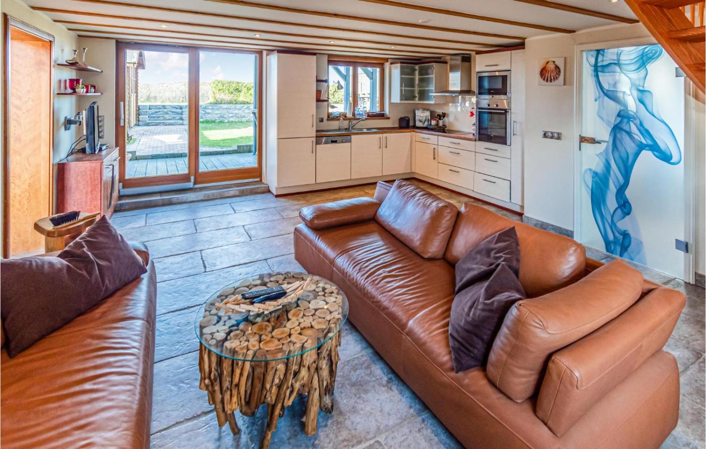 Ferienhaus mit 2 Schlafzimmern. The fireplace is the standout feature of this holiday home. This spacious holiday home features 1 living room, 2 separate bedrooms and 2 bathrooms with a bath and a shower. In the fully equipped kitchen, guests will find a stovetop, a refrigerator, a dishwasher and kitchenware. The holiday home features a washing machine, a private entrance, a tea and coffee maker, a TV, as well as sea views. The unit has 2 beds.