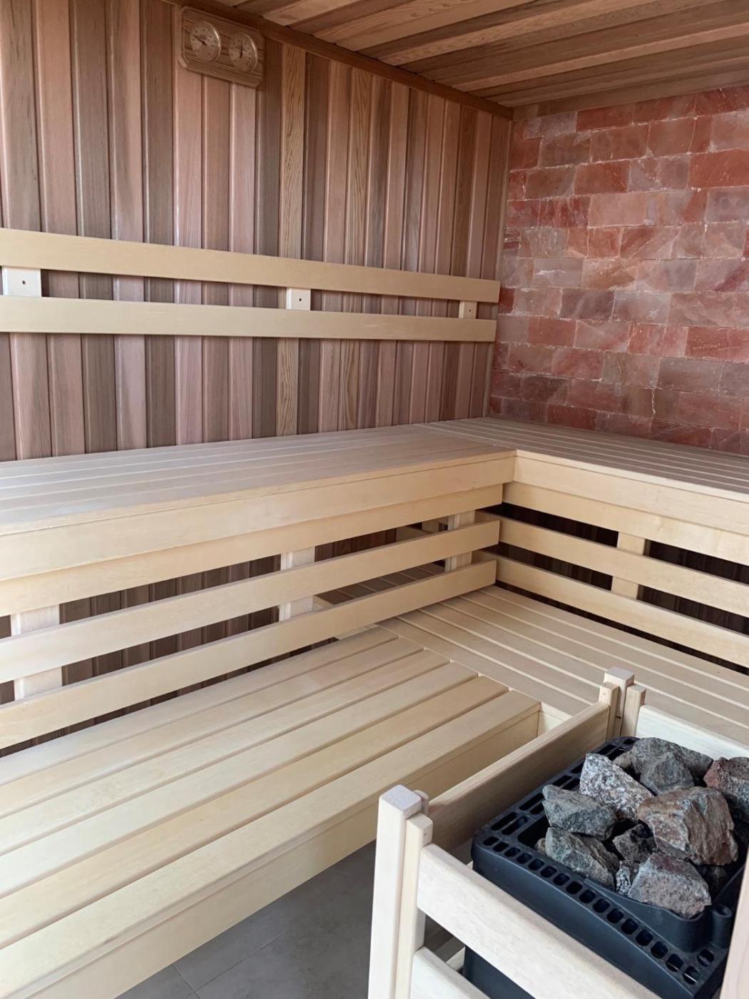Haus mit 2 Schlafzimmern. This holiday homes standout features are the hot tub, spa bath and sauna. In the fully equipped kitchen, guests will find a stovetop, a refrigerator, a dishwasher and kitchenware. The spacious air-conditioned holiday home offers a flat-screen TV with streaming services, a washing machine, a private entrance, soundproof walls as well as garden views. The unit offers 3 beds.