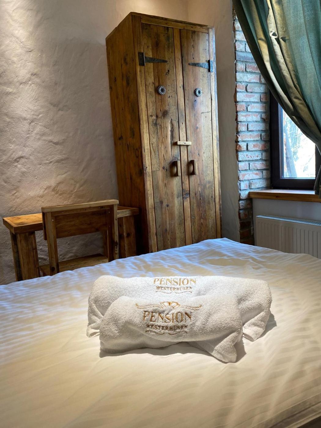 Alle Zimmer in der Unterkunft Pension Westerhuesen sind ausgestattet mit einem Flachbild-TV. Hier ist jedes Zimmer versehen mit einem Wasserkocher und einem eigenen Badezimmer mit einer Dusche und kostenlosen Pflegeprodukten – bestimmte Zimmer sind versehen mit einer Küche, die ausgestattet mit einem Kühlschrank ist. In der Unterkunft Pension Westerhuesen sind alle Zimmer versehen mit Bettwäsche und Handtüchern.