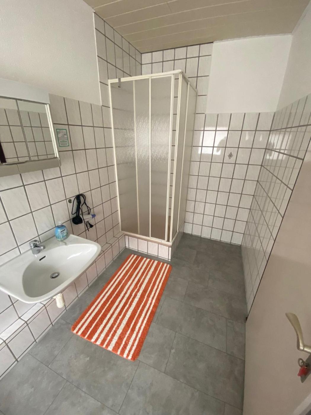 Doppelzimmer. The spacious double room provides a wardrobe and a carpeted floor, as well as a private bathroom featuring a shower. The unit offers 1 bed.