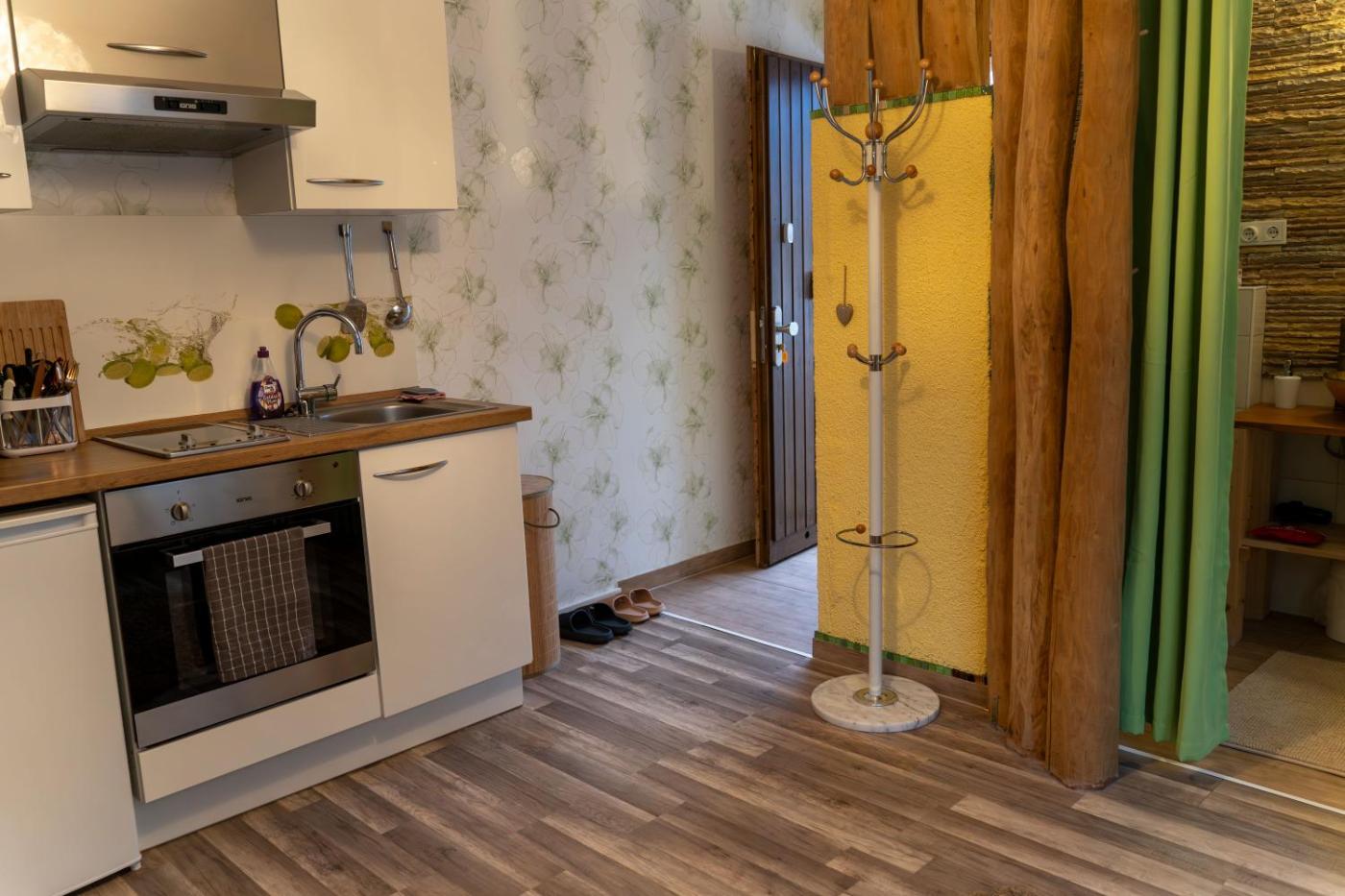 Apartment mit Balkon. Featuring a private entrance, this apartment also consists of 1 bedroom, a seating area and 1 bathroom with a walk-in shower and a hairdryer. The well-fitted kitchen features a stovetop, a refrigerator, kitchenware and an oven. Boasting a balcony with garden views, this apartment also provides a tea and coffee maker and a flat-screen TV with satellite channels. The unit offers 1 bed.