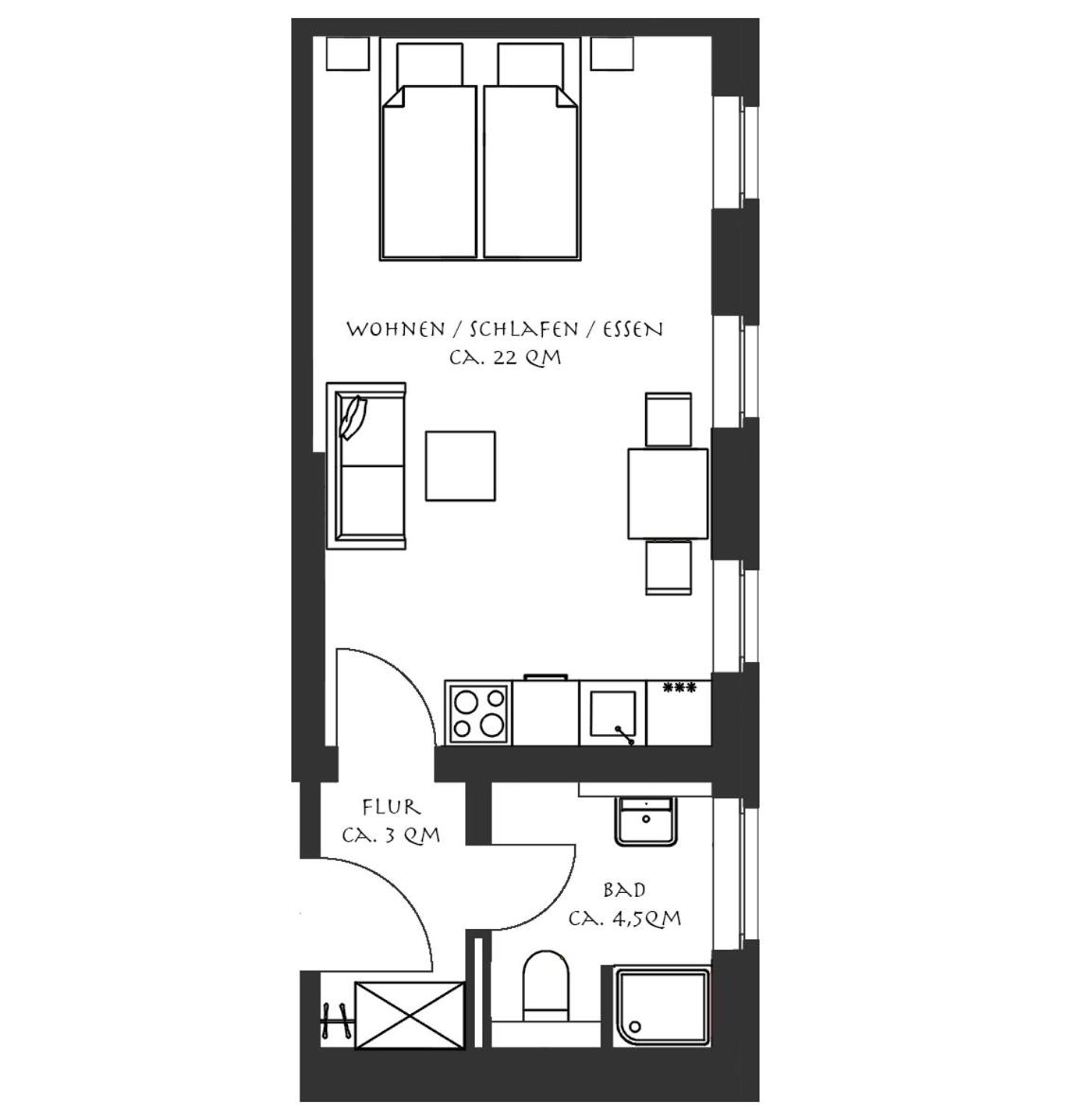 Apartment mit 1 Schlafzimmer. This apartment is comprised of a kitchenette, a seating area, 1 separate bedroom and 1 bathroom with a shower and a hairdryer. Guests can make meals in the kitchenette that is fitted with a stovetop, a refrigerator, a dishwasher and kitchenware. The apartment offers a flat-screen TV, a tea and coffee maker, a dining area, a wardrobe as well as ancourtyard view. The unit offers 1 bed.