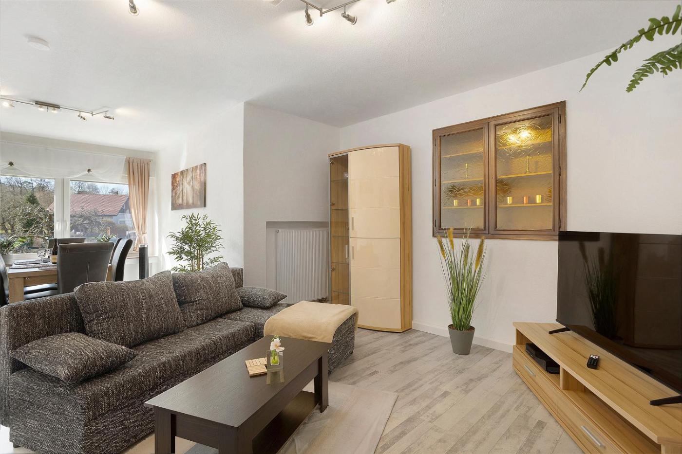 Apartment mit Dusche. This spacious apartment is comprised of 1 living room, 3 separate bedrooms and 1 bathroom with a shower and a hairdryer. In the fully equipped kitchen, guests will find a dishwasher, kitchenware, an oven and a microwave. The apartment offers a washing machine, a coffee machine, tumble dryer, a TV with streaming services, as well as garden views. The unit offers 5 beds.