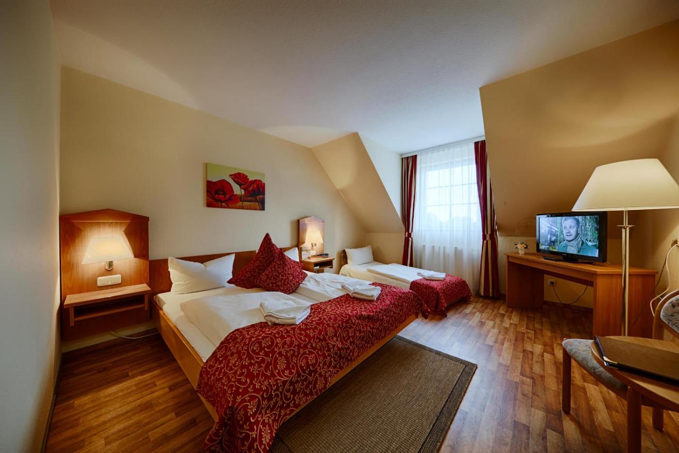 Die geräumigen Zimmer im Kurhotel Auerhahn sind gemütlich mit klassischen Möbeln eingerichtet. Zu den Annehmlichkeiten gehören ein Flachbild-TV, kostenfreies Mineralwasser bei der Ankunft und ein Bademantel im Bad.