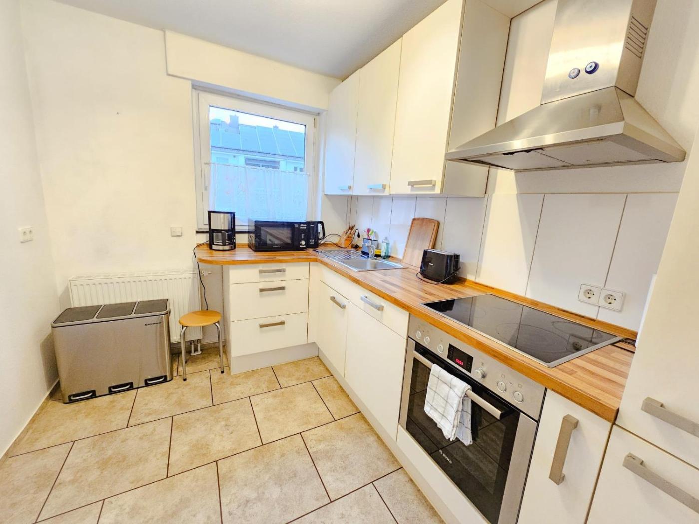 Apartment mit 2 Schlafzimmern. This spacious apartment comprises 1 living room, 2 separate bedrooms and 1 bathroom with a bath and a shower. Guests can make meals in the kitchen that comes with a stovetop, a refrigerator, a dishwasher and kitchenware. Featuring a terrace with garden views, this apartment also provides a washing machine and a flat-screen TV. The unit offers 3 beds.