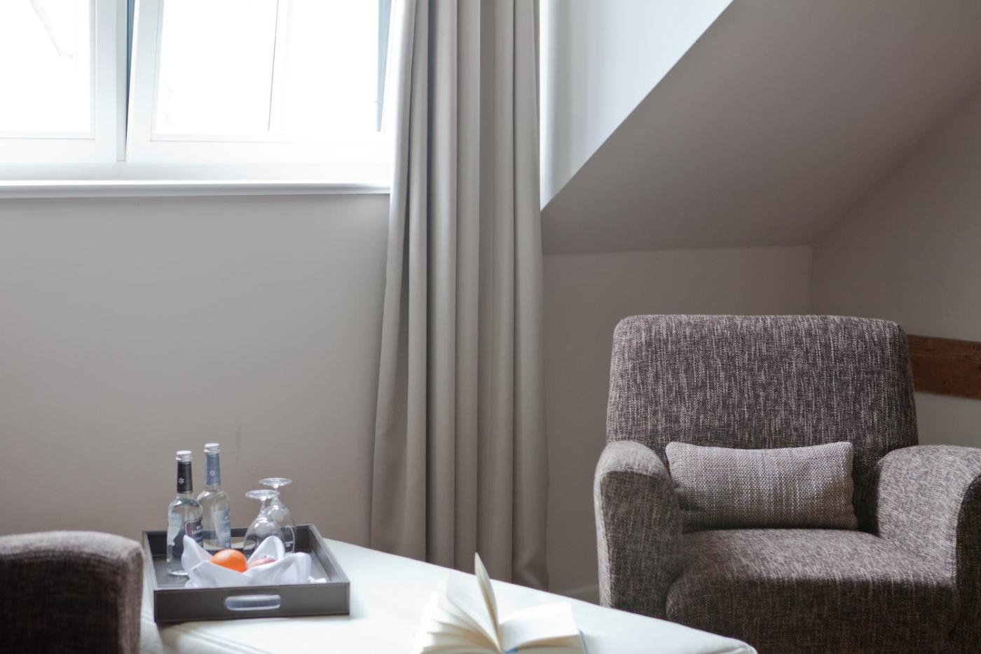 Lindensuite. Die helle und stilvolle Suite verfügt über einen Wohnbereich mit Sat-TV. Das eigene Badezimmer ist mit einer Badewanne und einer großen Dusche ausgestattet. ;