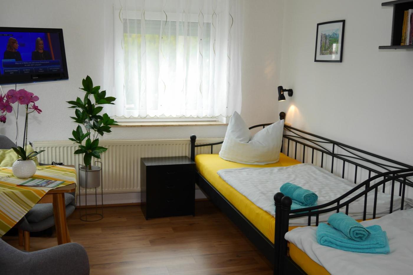 Budget Doppelzimmer. The double room offers a private entrance, a seating area, as well as a private bathroom featuring a shower and a hairdryer. The unit offers 2 beds.