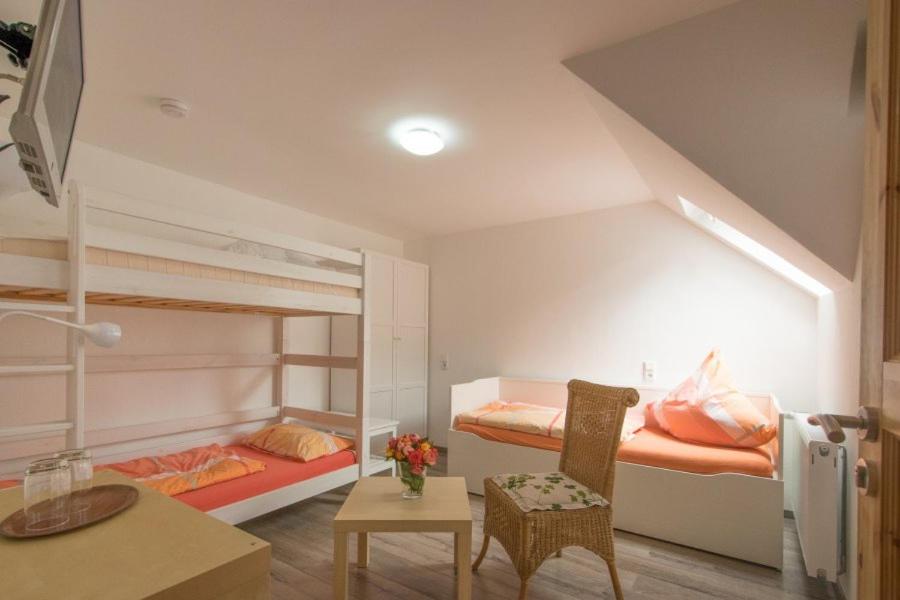 Dreibettzimmer. Offering free toiletries, this triple room includes a private bathroom with a shower. The air-conditioned triple room offers a flat-screen TV with satellite channels, a wardrobe, parquet floors, heating as well as garden views. The unit offers 3 beds. ;