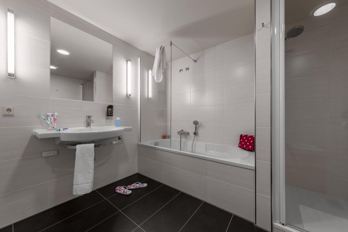 Die modernen Zimmer im Serways Hotel Heiligenroth sind mit Sat-TV und einem eigenen Bad ausgestattet.