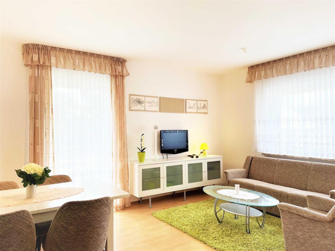 Apartment mit 1 Schlafzimmer. The apartment includes a private bathroom equipped with a bath, a shower and a hairdryer. The apartments kitchen, which has a refrigerator and an oven, is available for cooking and storing food. This apartment features a barbecue, heating, a flat-screen TV and a balcony. The unit offers 3 beds.
