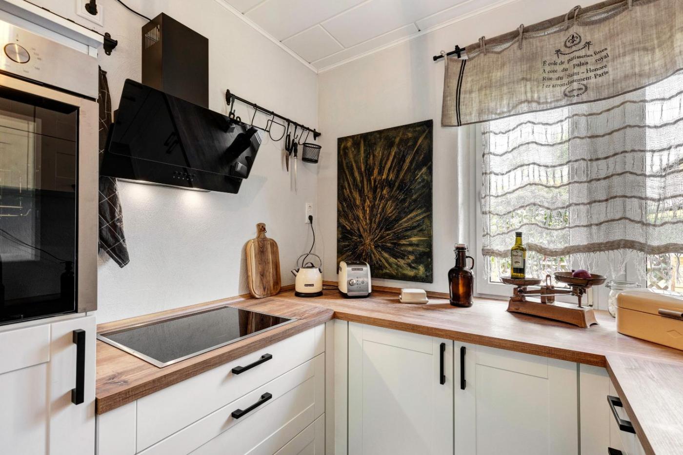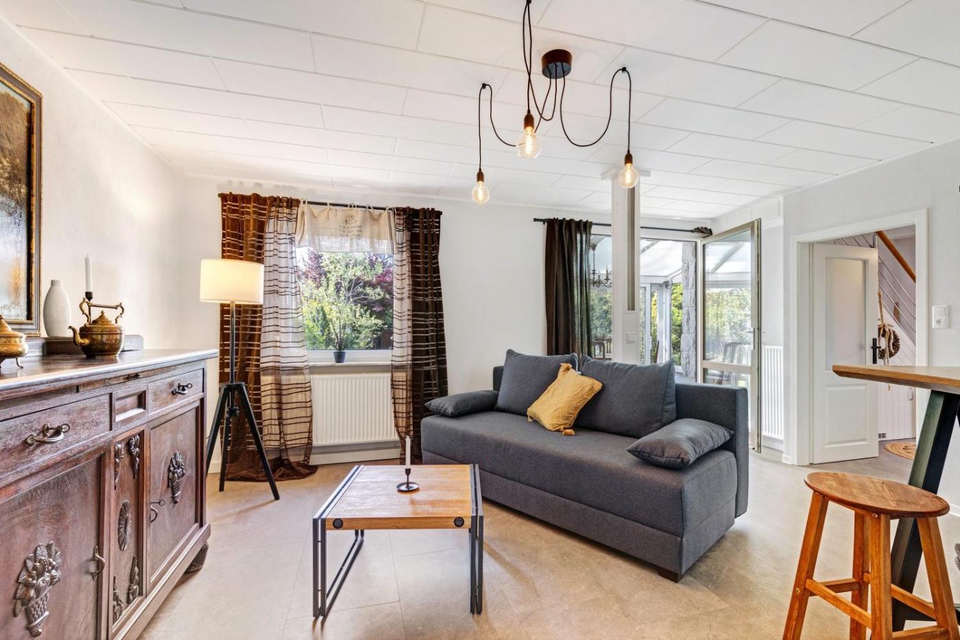 Haus mit 2 Schlafzimmern. Featuring a private entrance, this holiday home consists of 1 living room, 2 separate bedrooms and 1 bathroom with a shower and a hairdryer. The fully equipped kitchen has a dishwasher, kitchenware, an oven and a toaster. This holiday home features a coffee machine, a barbecue, a TV with cable channels and a patio. The unit offers 2 beds and 1 futon.