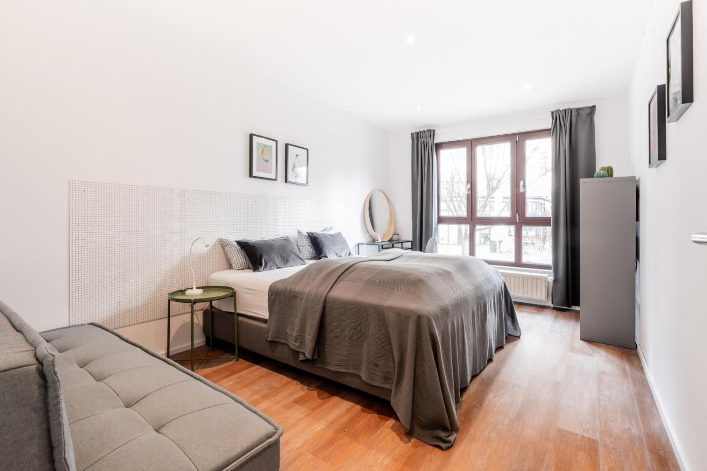 Apartment mit 3 Schlafzimmern. Diese geräumige Ferienwohnung verfügt über 1 Wohnzimmer, 3 separate Schlafzimmer sowie 2 Badezimmer mit einer ebenerdigen Dusche und kostenlosen Pflegeprodukten. In der gut ausgestatteten Küche erwarten Sie ein Kochfeld, ein Kühlschrank, ein Geschirrspüler und ein Backofen. Hier können Sie sich Mahlzeiten zubereiten. Die Ferienwohnung mit Gartenblick bietet zudem eine Waschmaschine, einen eigenen Eingang, einen Flachbild-TV mit Streamingdiensten sowie Tee- und Kaffeezubehör. Die Wohneinheit bietet 9 Betten.