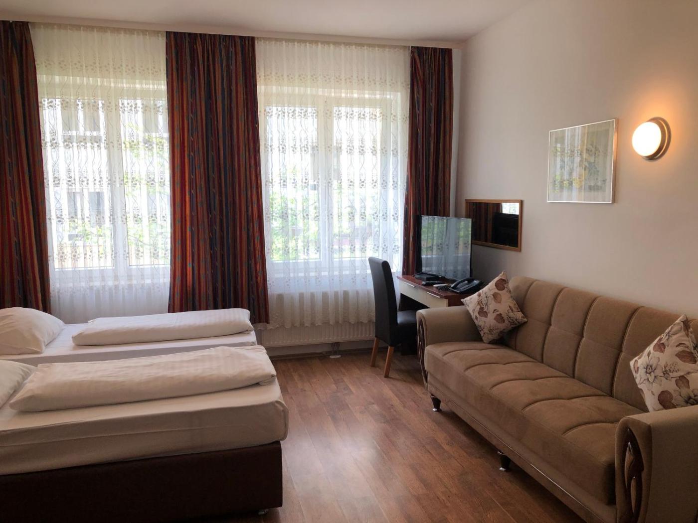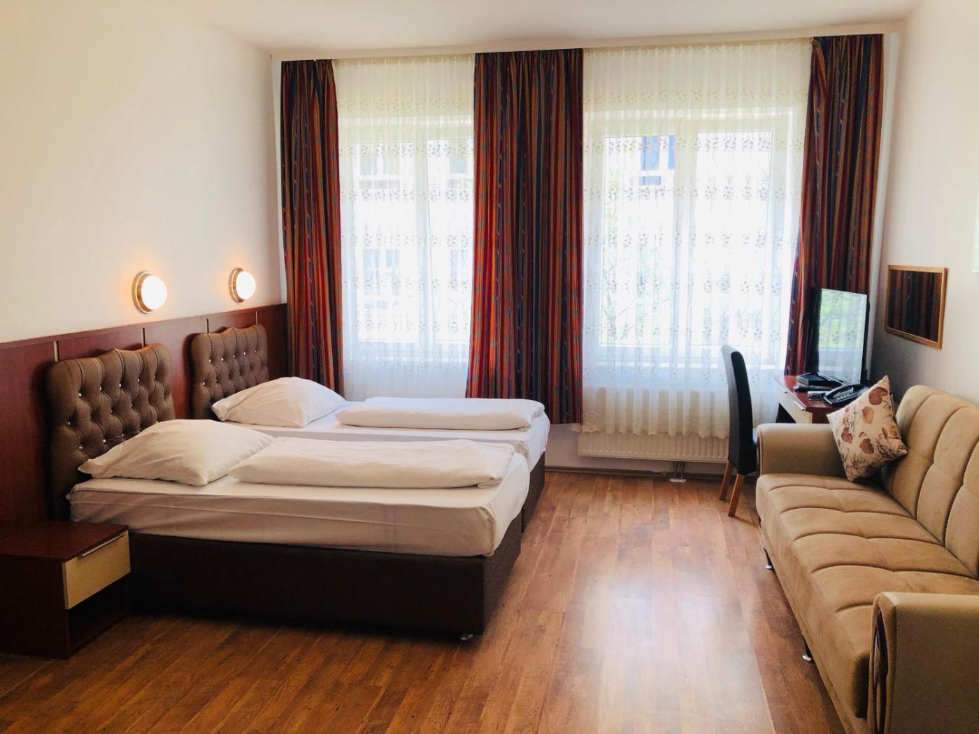 Doppelzimmer. Das Doppelzimmer verfügt über schallisolierte Wände, einen Kleiderschrank sowie ein eigenes Bad mit einer Badewanne und einer Dusche. Das Doppelzimmer verfügt über einen Wasserkocher, ein Sofa, Parkettböden, einen Flachbild-TV mit Sat-Kanälen sowie einen Blick auf den Innenhof. ;