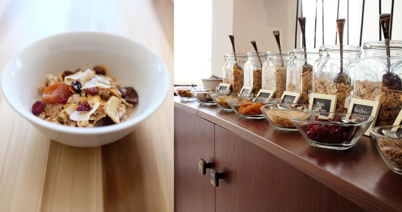 Das Parkhotel Obermenzing serviert jeden Morgen ein Frühstück mit einer Auswahl an Würstchen, Käse, Obst, Eierspeisen und Müsli. Im Sommer können Sie auf der Terrasse speisen.