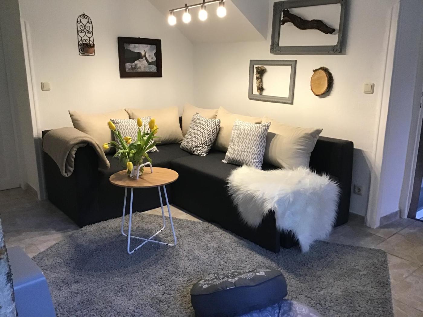 Die Unterkunft Kleine Milchbar Barrierefrei in den Bergen auf dem Hof Grindelborn bietet ihren Gästen eine Terrasse, Bergblick, einen Sitzbereich, einen Flachbild-TV, eine voll ausgestattete Küche mit einem Kühlschrank und einem Geschirrspüler sowie ein eigenes Badezimmer mit einer Dusche und kostenlosen Pflegeprodukten. Es gibt einen Ofen, eine Mikrowelle und eine Minibar sowie eine Kaffeemaschine und einen Wasserkocher.