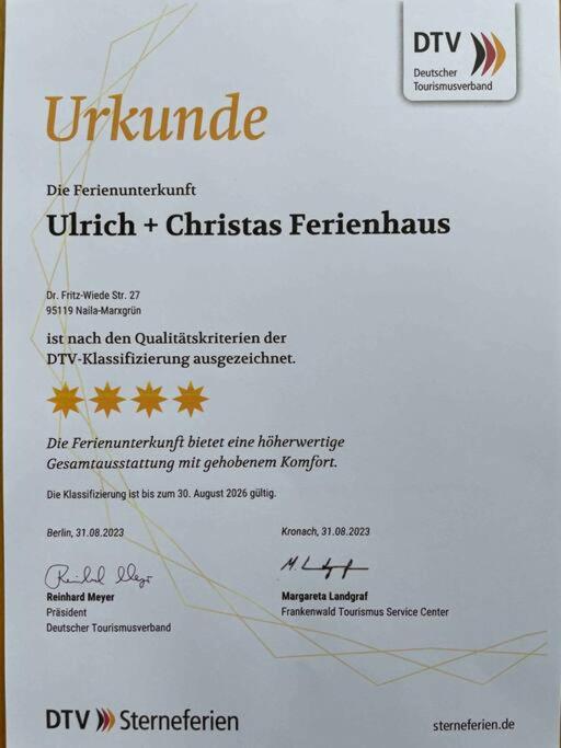 Die Unterkunft Ulrich & Christa´s Ferienhaus, die über eine Terrasse verfügt, bietet Übernachtungsmöglichkeiten in Naila mit kostenlosem WLAN und Gartenblick. 46 km von Hohenwarte-Stausee entfernt gelegen bietet die Unterkunft einen Garten und einen kostenlosen Privatparkplatz.