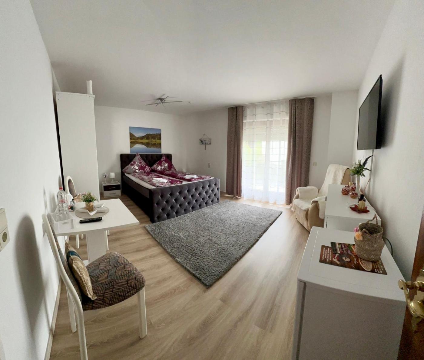 Doppelzimmer mit eigenem Bad. The spacious double room offers a private entrance, a tea and coffee maker, a balcony with garden views as well as a private bathroom featuring a shower. The unit offers 1 bed.