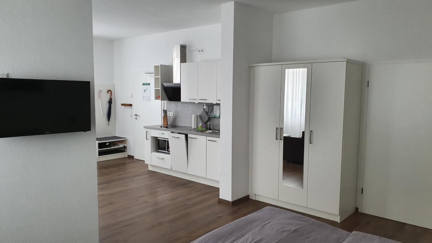 Apartment - Erdgeschoss. Featuring a private entrance, this apartment consists of 1 living room, 1 separate bedroom and 1 bathroom with a shower and a hairdryer. Guests can make meals in the kitchen that is equipped with a stovetop, a refrigerator, a dishwasher and kitchenware. This apartment features a washing machine, soundproof walls, flat-screen TV with satellite channels, as well as winechampagne for guests. The unit offers 1 bed. ;