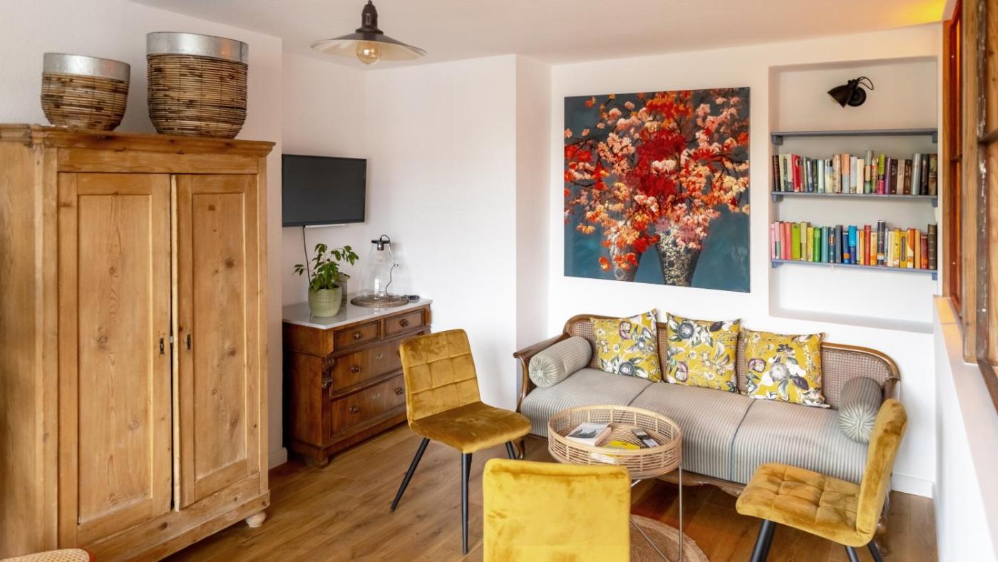 Studio-Apartment. Featuring a private entrance, this apartment is comprised of 1 living room, 1 separate bedroom and 1 bathroom with a shower and a hairdryer. In the well-equipped kitchen, guests will find a stovetop, a refrigerator, a dishwasher and kitchenware. The unit features a tea and coffee maker, mountain views, a terrace and winechampagne is featured for guests. The unit offers 1 bed. ;