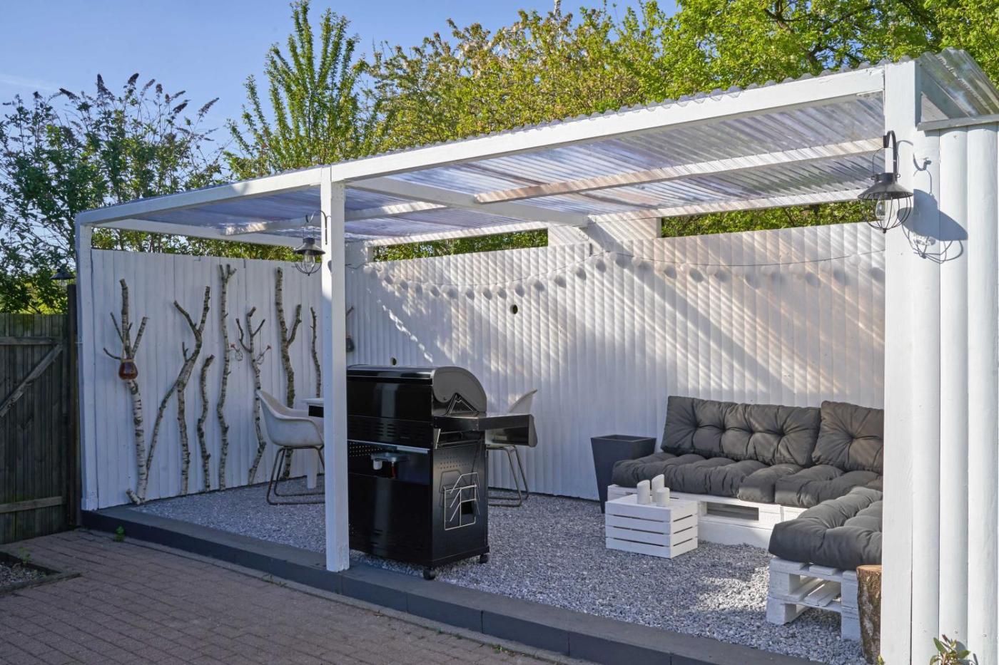 Haus mit 4 Schlafzimmern. This holiday homes special feature is the fireplace. This spacious holiday home consists of 2 living rooms, 4 separate bedrooms and 2 bathrooms with a walk-in shower and a hairdryer. Guests will find a refrigerator, a dishwasher, an oven and a microwave in the well-fitted kitchen. The holiday home also offers a barbecue. Featuring a terrace with garden views, this holiday home also provides a washing machine and a flat-screen TV with cable channels. The unit offers 6 beds.