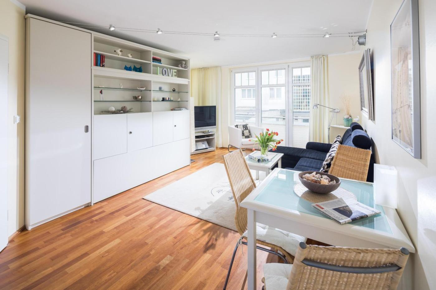Die Unterkunft Bäckerstrasse Whg 7 ist ausgestattet mit 1 Schlafzimmer, einer Küche mit einem Geschirrspüler und einer Mikrowelle, einer Waschmaschine und 1 Badezimmer mit einem Haartrockner.
