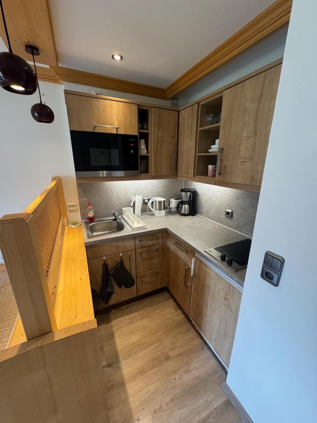 Diese Ferienwohnung mit einer Terrasse und Bergblick bietet 1 Schlafzimmer, ein Wohnzimmer, einen Flachbild-TV, eine gut ausgestattete Küche mit einem Kühlschrank und einer Mikrowelle sowie 1 Badezimmer mit einer Dusche. In dieser Ferienwohnung werden Handtücher und Bettwäsche angeboten.