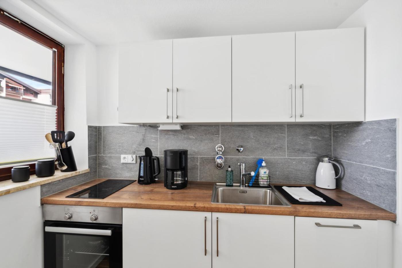 Apartment mit 1 Schlafzimmer. This apartment is comprised of a kitchen, a seating area, 1 separate bedroom and 1 bathroom with a shower and a hairdryer. The well-fitted kitchen has a stovetop, a refrigerator, a dishwasher and kitchenware. This apartment features a tea and coffee maker, flat-screen TV with satellite channels, garden views, as well as chocolate for guests. The unit offers 2 beds.
