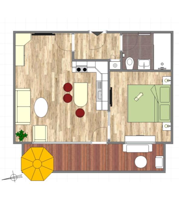 Apartment mit 1 Schlafzimmer. This apartment consists of 1 bedroom, a kitchenette and 1 bathroom with a shower and a hairdryer. Guests can make meals in the kitchenette that is equipped with a stovetop, a refrigerator, a dishwasher and kitchenware. Featuring a balcony with mountain views, this apartment also provides a tea and coffee maker and a flat-screen TV. The unit offers 1 bed.