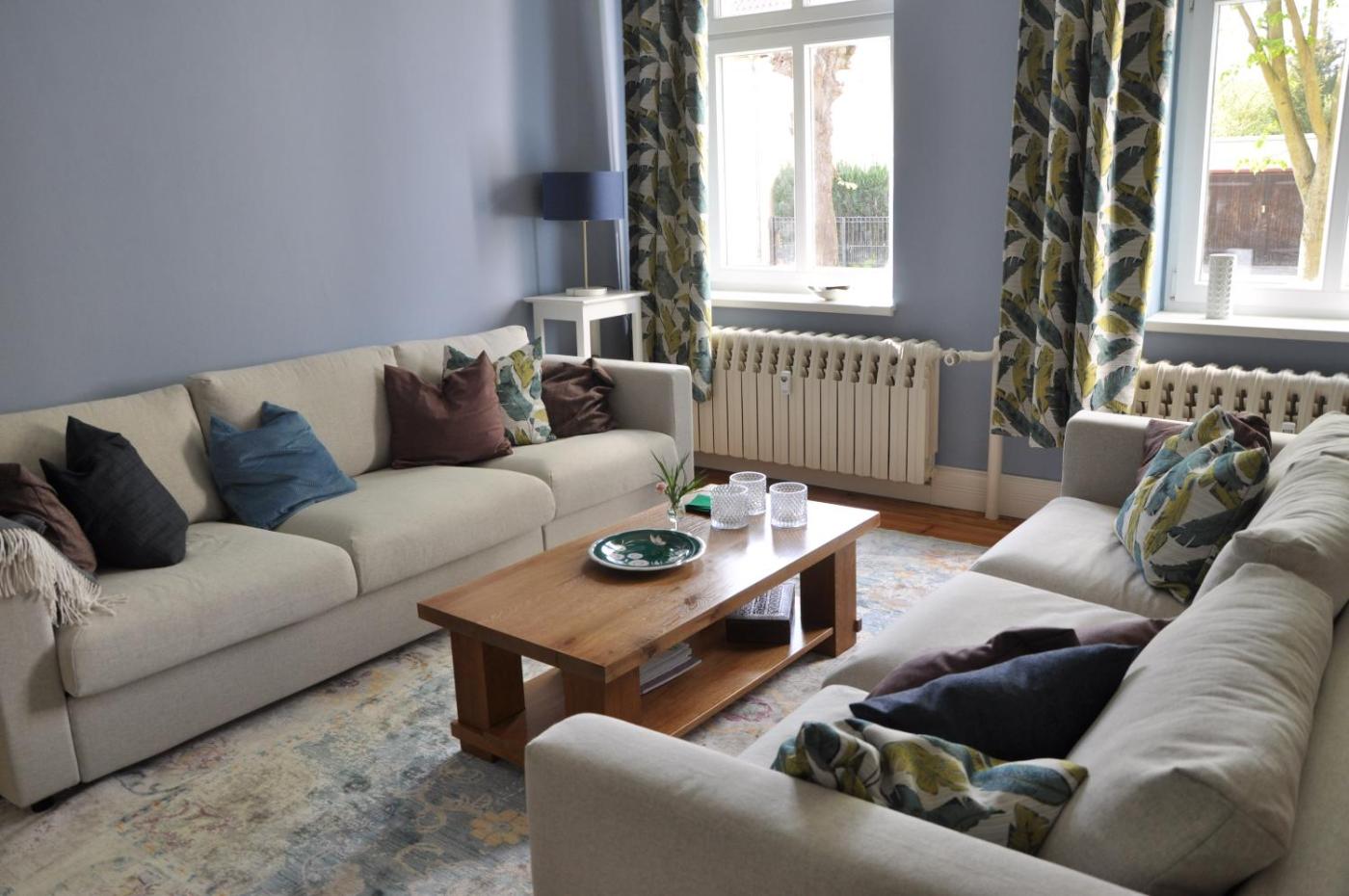 Apartment - Erdgeschoss. This spacious apartment includes 1 living room, 3 separate bedrooms and 2 bathrooms with a walk-in shower and a bath. Guests will find a stovetop, a refrigerator, a dishwasher and kitchenware in the kitchen. The apartment also features a barbecue. The apartment offers a washing machine, a private entrance, a tea and coffee maker, a flat-screen TV with streaming services, as well as garden views. The unit has 5 beds.