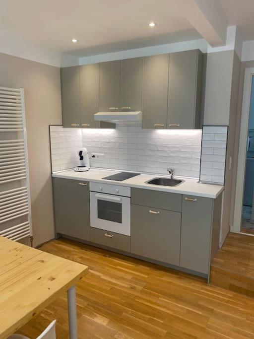 Apartment mit 1 Schlafzimmer. The well-fitted kitchen features a stovetop, a refrigerator, kitchenware and an oven. The apartment provides a flat-screen TV with streaming services, a washing machine, a private entrance, soundproof walls as well as garden views. The unit offers 2 beds.