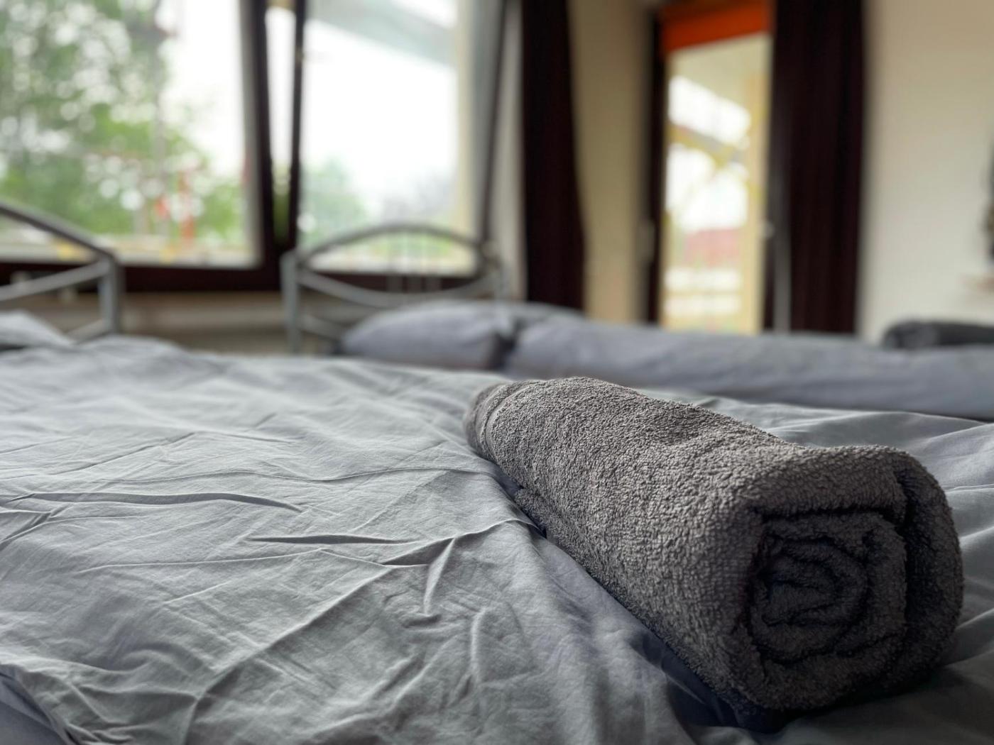 Budget Doppelzimmer. The well-fitted kitchen features a stovetop, a refrigerator, a dishwasher and kitchenware. The double room provides a washing machine, a tea and coffee maker, as well as a shared bathroom featuring a shower and a hairdryer. The unit offers 1 bed.