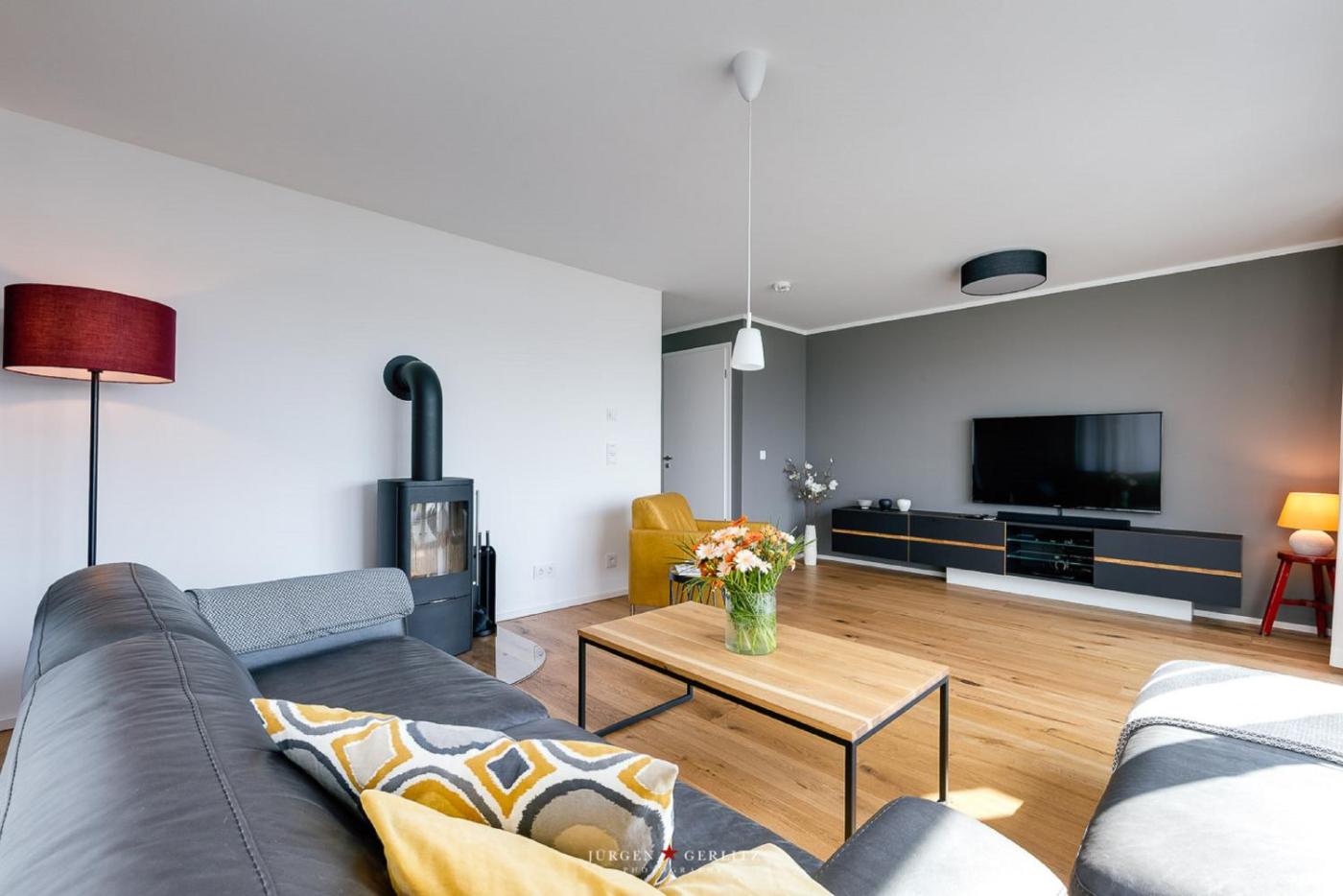Ferienhaus. This holiday home features a sauna and a fireplace. Boasting a private entrance, this spacious holiday home also includes 2 bedrooms, a seating area and 2 bathrooms with a bath and a shower. Guests will find a stovetop, a refrigerator, a dishwasher and kitchenware in the fully equipped kitchen. The holiday home also features a barbecue. Featuring a terrace with sea views, this holiday home also offers a washing machine and a TV. The unit has 2 beds.