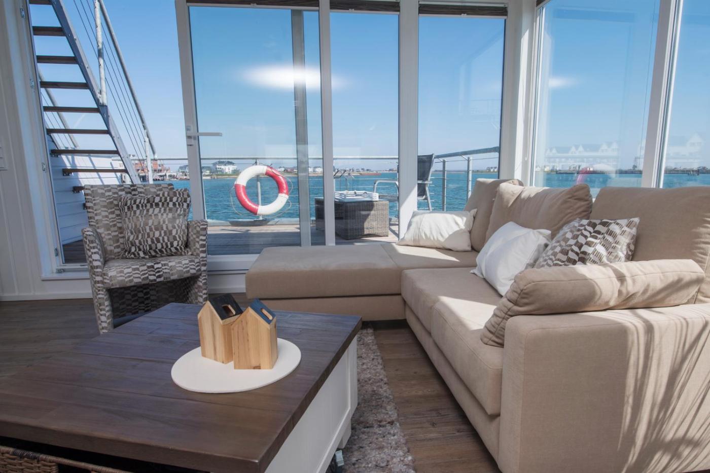 Sehen den Preis anFotos Schwimmendes Ferienhaus Antares One by Seeblick Ferien ORO, rundum Wasser, Sauna