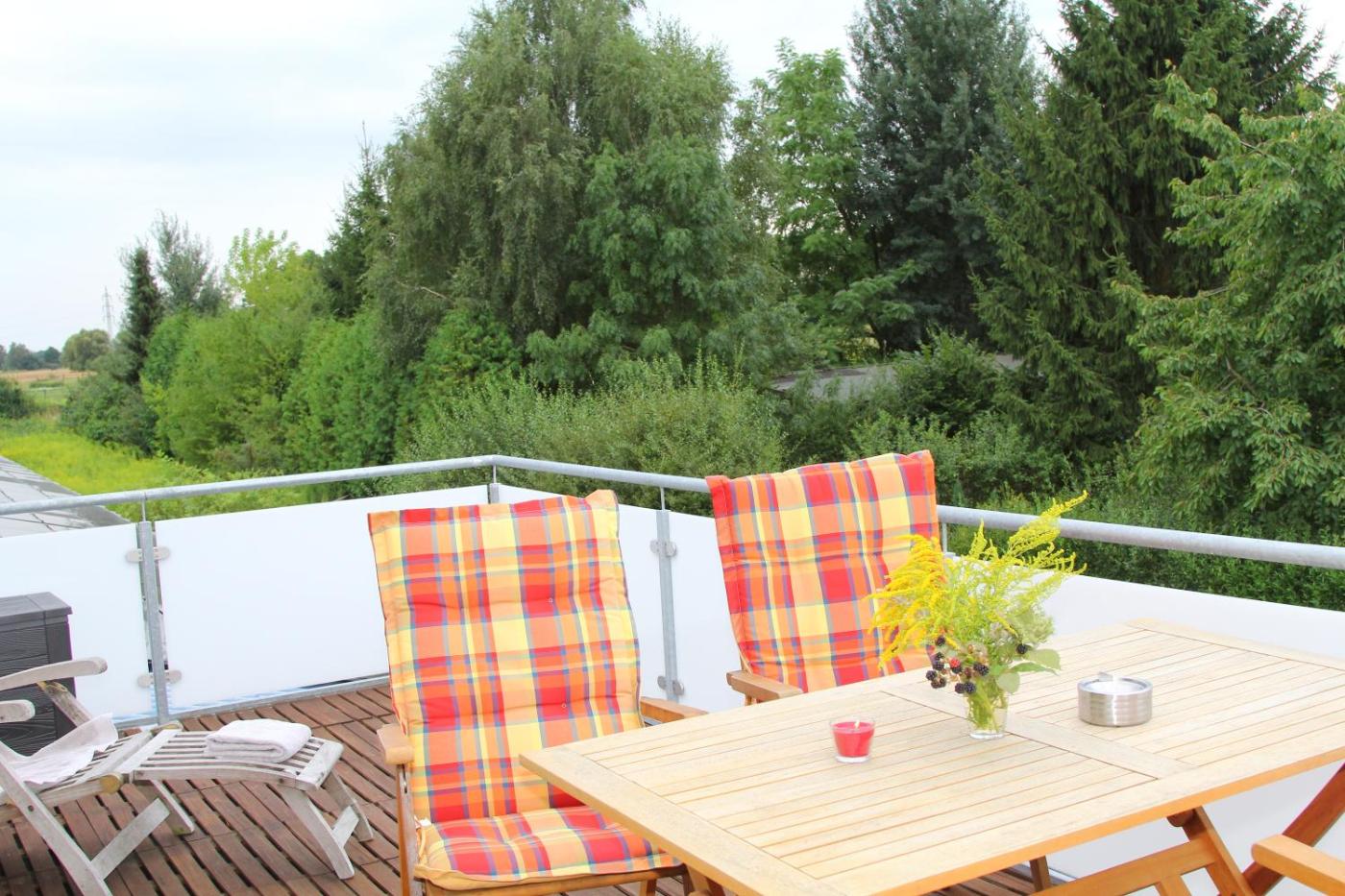 Vor Ort ist eine Terrasse verfügbar und in der unmittelbaren Umgebung der Unterkunft Ferienwohnungen In den Wiesen Oranienburg gibt es Möglichkeiten zum Fahrradfahren.