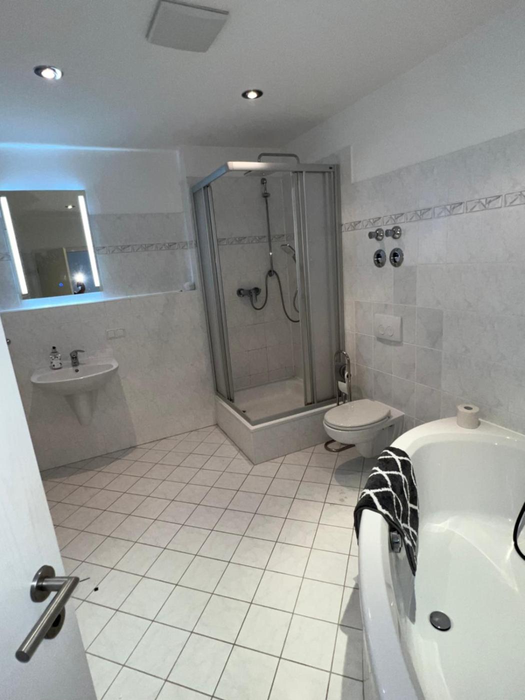 Apartment mit 2 Schlafzimmern mit Balkon und Terrasse. This spacious apartment is comprised of 1 living room, 2 separate bedrooms and 1 bathroom with a bath and a shower. The well-equipped kitchen has a stovetop, a refrigerator, kitchenware and a microwave. The apartment features a washing machine, a private entrance, soundproof walls as well as a balcony with city views. The unit offers 7 beds.
