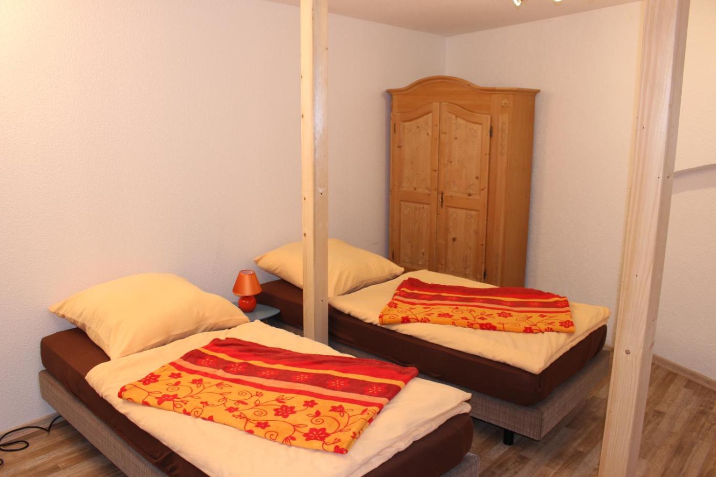 Deluxe Zweibettzimmer. This twin rooms standout feature is the fireplace. The twin room provides a seating area, a dining area, as well as a private bathroom featuring a shower. In the well-equipped kitchen, guests will find a stovetop, a refrigerator, kitchenware and a toaster. The twin room offers a flat-screen TV with cable channels, a private entrance, soundproof walls, a tea and coffee maker as well as ancourtyard view. The unit offers 2 beds.