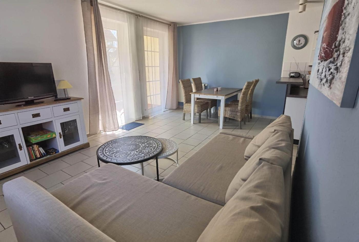 Apartment mit 1 Schlafzimmer und Terrasse. This apartment comes with 1 living room, 1 separate bedroom and 1 bathroom with a shower. Guests can make meals in the kitchenette that features a refrigerator, a dishwasher, kitchenware and an oven. This apartment features heating, a TV with cable channels and a terrace. The unit has 2 beds.