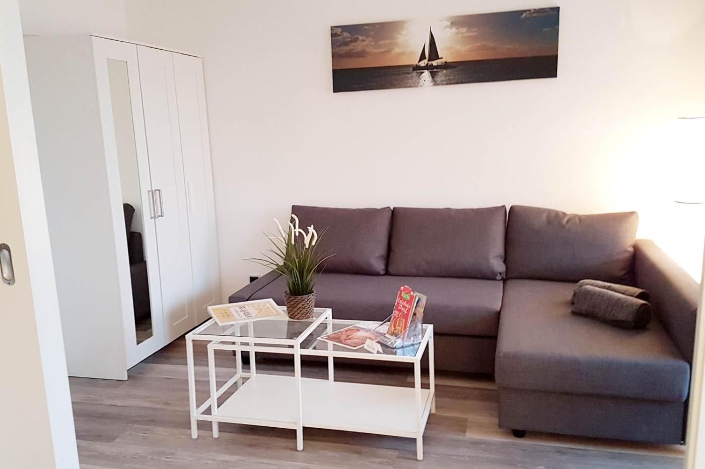 Apartment mit 1 Schlafzimmer und Balkon. This apartment consists of 1 living room, 1 separate bedroom and 1 bathroom with a shower. In the kitchenette, guests will find a stovetop, a refrigerator, a dishwasher and kitchenware. Featuring a balcony, this apartment also provides a coffee machine, a seating area and a flat-screen TV. The unit offers 2 beds. ;