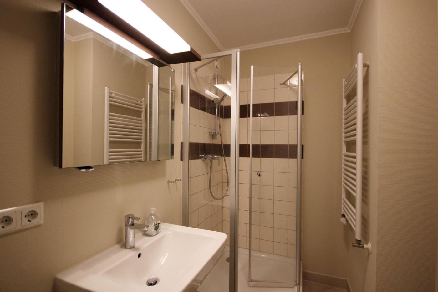 Apartment mit Balkon. This apartment features 1 living room, 1 separate bedroom and 1 bathroom with a shower and a hairdryer. The well-fitted kitchen has a stovetop, a refrigerator, a dishwasher and kitchenware. Boasting a balcony with city views, this apartment also features a washing machine and a flat-screen TV with cable channels. The unit has 2 beds. ;