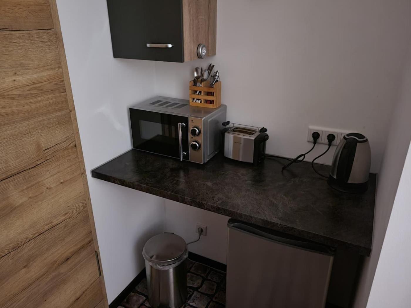 Standard Einzelzimmer. Featuring free toiletries, this single room includes a private bathroom with a walk-in shower and a hairdryer. In the kitchenette, guests will find a refrigerator, kitchenware, a microwave and a toaster. This single room has a tea and coffee maker, a dining area, flat-screen TV with streaming services, as well as chocolate for guests.