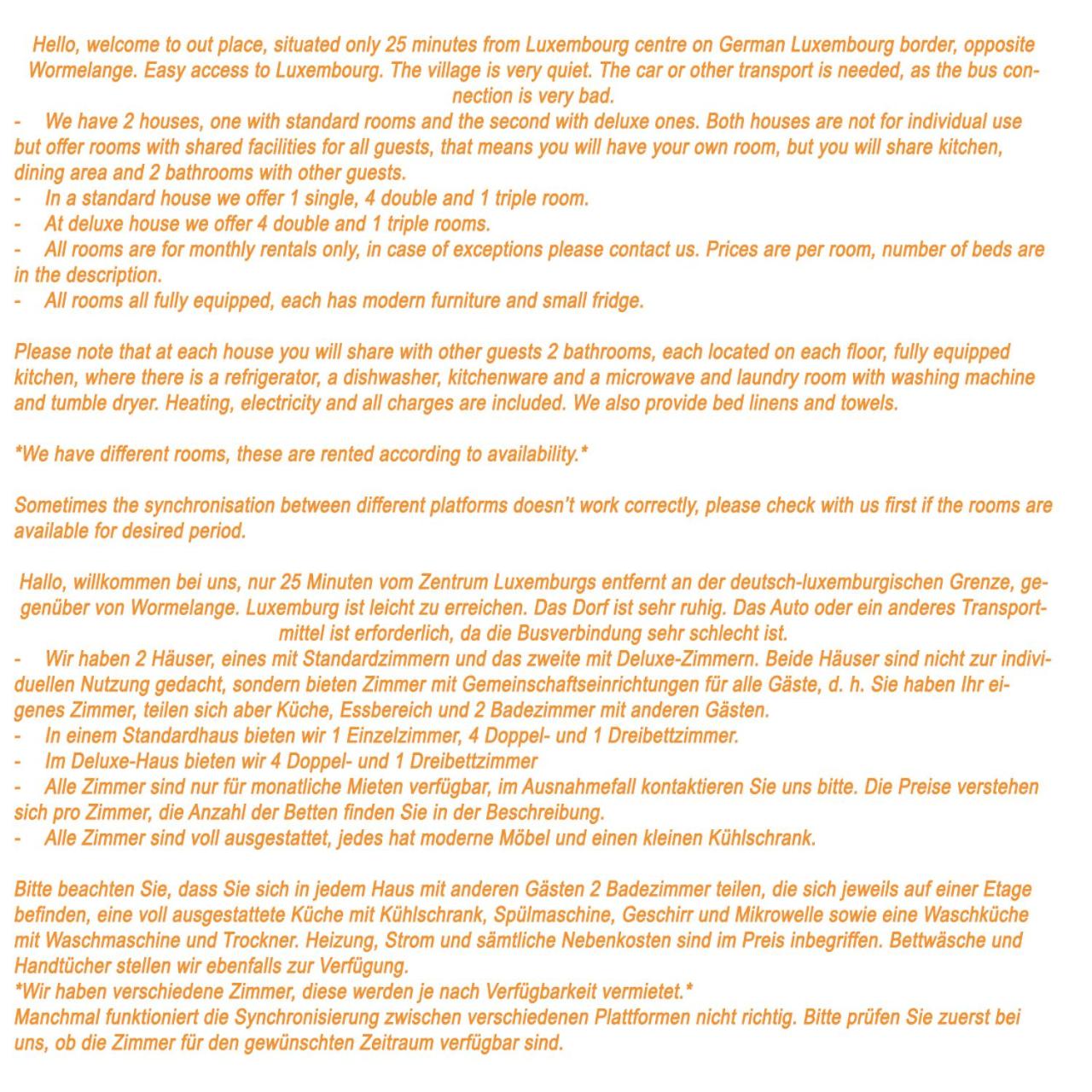 Die Unterkunft Helfant Luxembourg 2 Standard Double Rooms 5&6 - 4 persons in Palzem bietet Übernachtungsmöglichkeiten nur für Erwachsene mit einem Garten, einer Gemeinschaftslounge und einer Terrasse. Die Unterkunft liegt 28 km von Theater Trier, 30 km von Rheinisches Landesmuseum Trier und 34 km von Universität Trier entfernt. Die Unterkunft bietet eine Gemeinschaftsküche und kostenloses WLAN in der ganzen Unterkunft.
