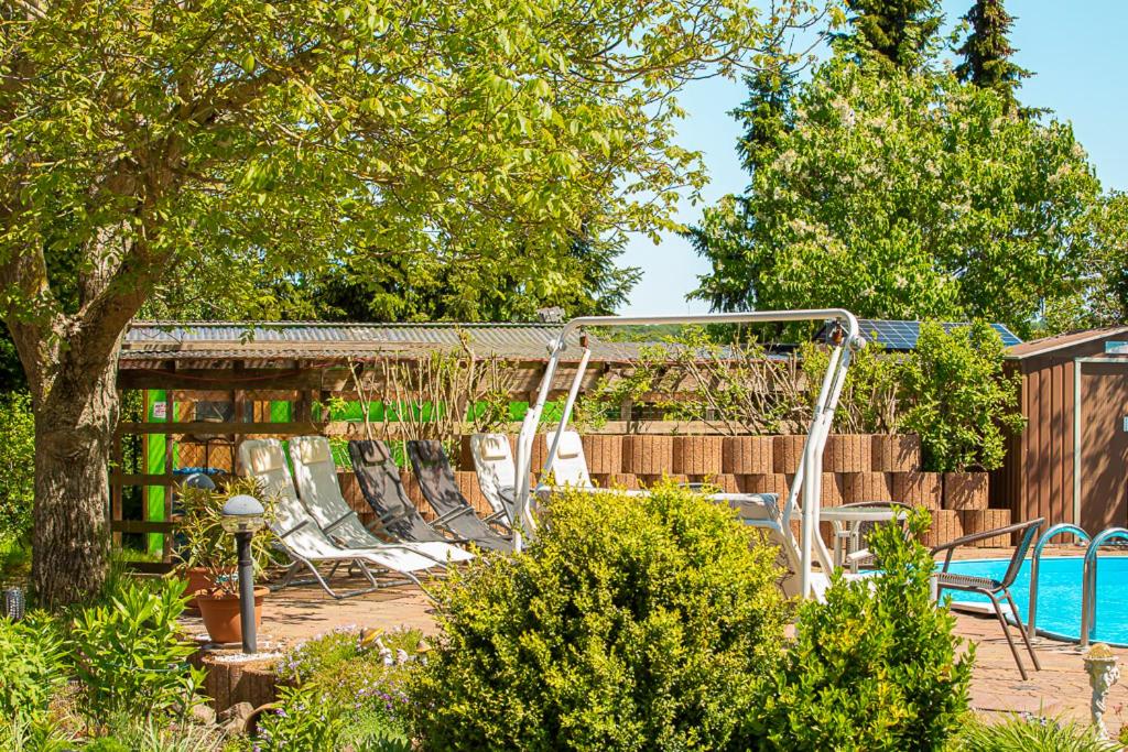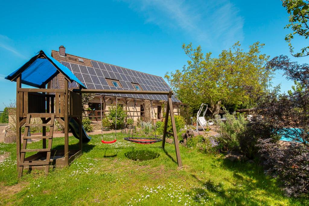 Die Unterkunft Ferienwohnung Am Walnussbaum bietet eine Sonnenterrasse. Gäste können im Außenpool schwimmen, Fahrradfahren oder im Garten entspannen und die Möglichkeiten zum Grill nutzen.
