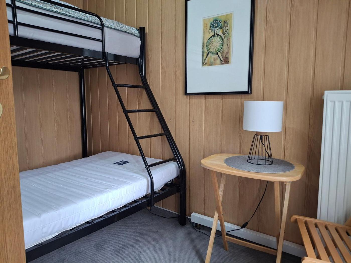 Dieses Ferienhaus mit einer Terrasse und Seeblick hat 2 Schlafzimmer, ein Wohnzimmer, einen Flachbild-TV, eine gut ausgestattete Küchenzeile mit einem Kühlschrank und einem Geschirrspüler sowie 1 Badezimmer mit einer Dusche. Für zusätzlichen Komfort kann die Unterkunft Handtücher und Bettwäsche gegen Aufpreis bieten.