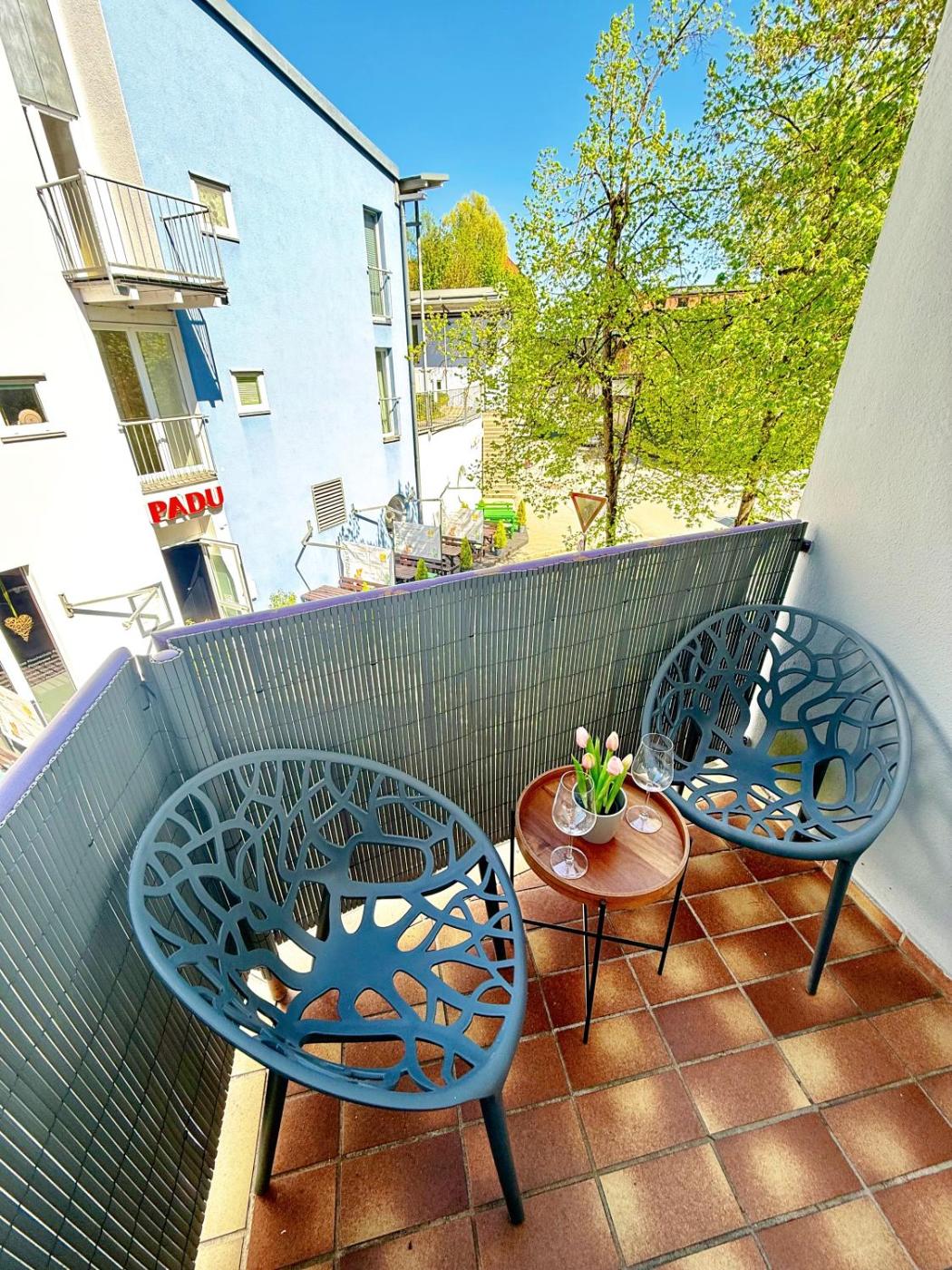 Apartment mit 1 Schlafzimmer. The apartment has 1 bedroom and 1 bathroom with a shower and free toiletries. The well-fitted kitchen features a stovetop, a refrigerator, kitchenware and an oven. Boasting a balcony with city views, this apartment also features a washing machine and a flat-screen TV with streaming services. The unit has 1 bed.