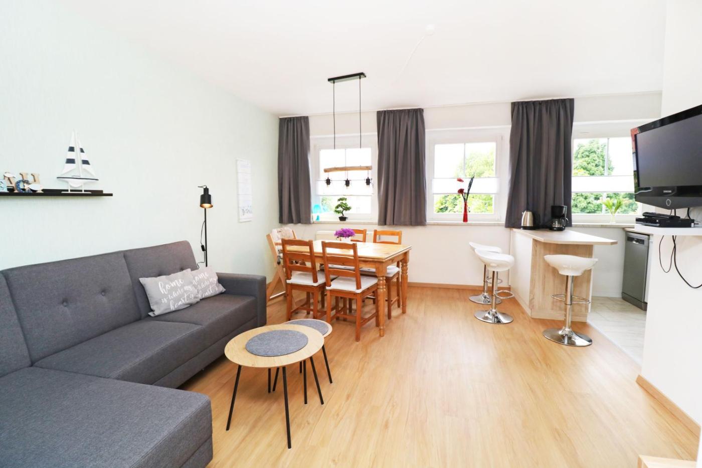 Apartment mit 2 Schlafzimmern. This spacious apartment is comprised of 1 living room, 2 separate bedrooms and 1 bathroom with a bath. In the kitchenette, guests will find a stovetop, a refrigerator, a dishwasher and kitchenware. The apartment offers a coffee machine, a seating area, a dining area, a sofa and a flat-screen TV with cable channels. The unit offers 3 beds.