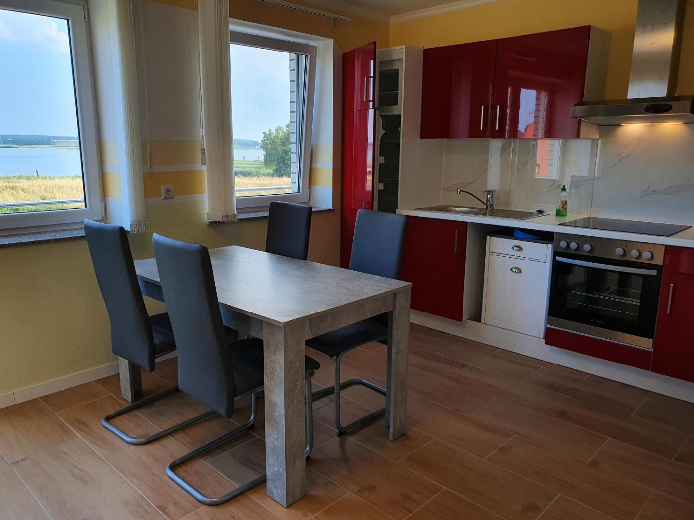 Die Unterkunft Lucys Haus 2 "am Peeneblick" bietet ihren Gästen einen Balkon, Flussblick, einen Sitzbereich, einen Satelliten Flachbild-TV, eine voll ausgestattete Küche mit einem Kühlschrank und einem Ofen sowie ein eigenes Badezimmer mit einer Dusche und einem Haartrockner. Es gibt eine Herdplatte und einen Toaster sowie eine Kaffeemaschine und einen Wasserkocher.