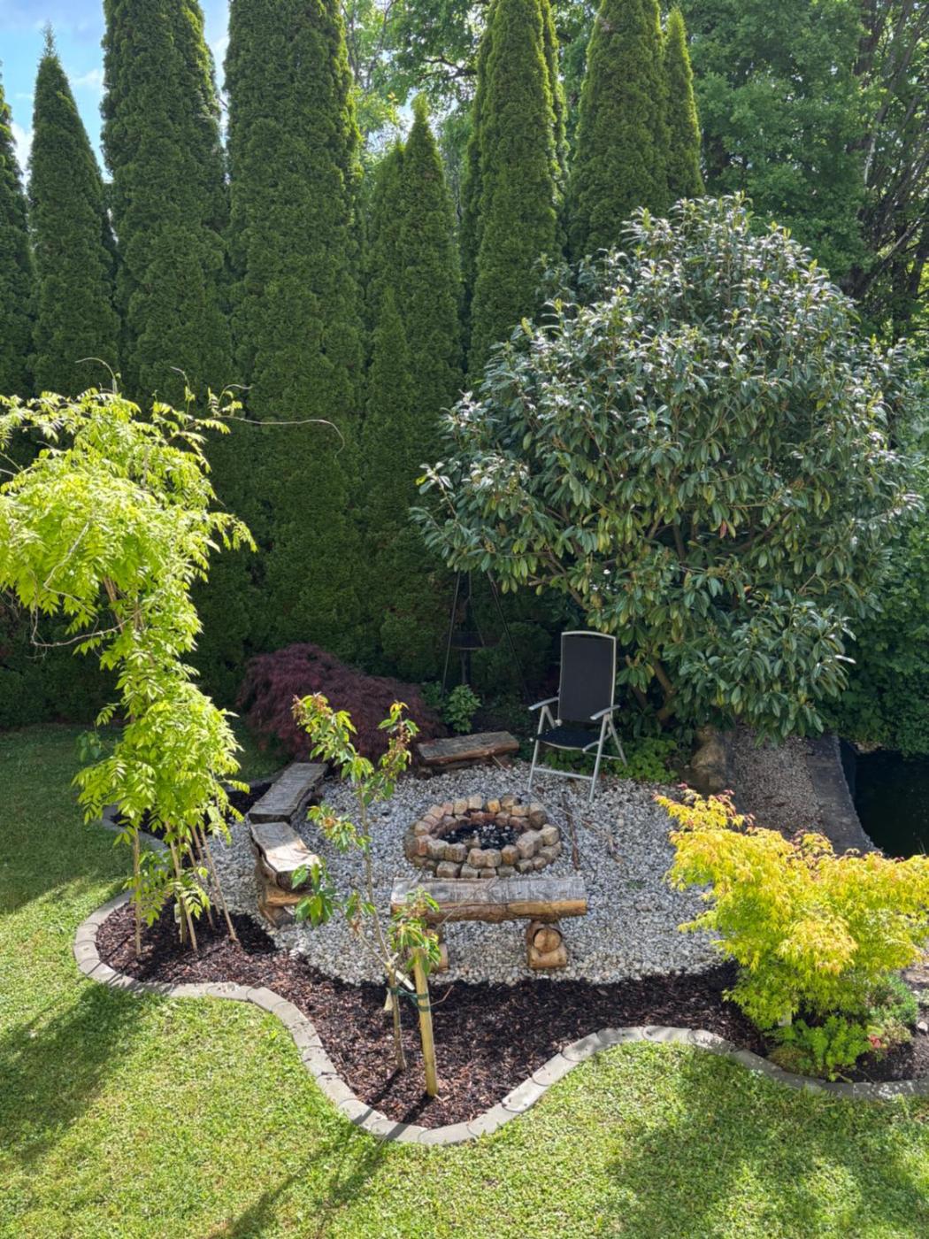 The holiday home with a terrace and garden views has 1 bedroom, a living room, a flat-screen TV, an equipped kitchenette with an oven and a fridge, and 1 bathroom with a walk-in shower. Towels and bed linen are available in the holiday home. The property has an outdoor dining area.